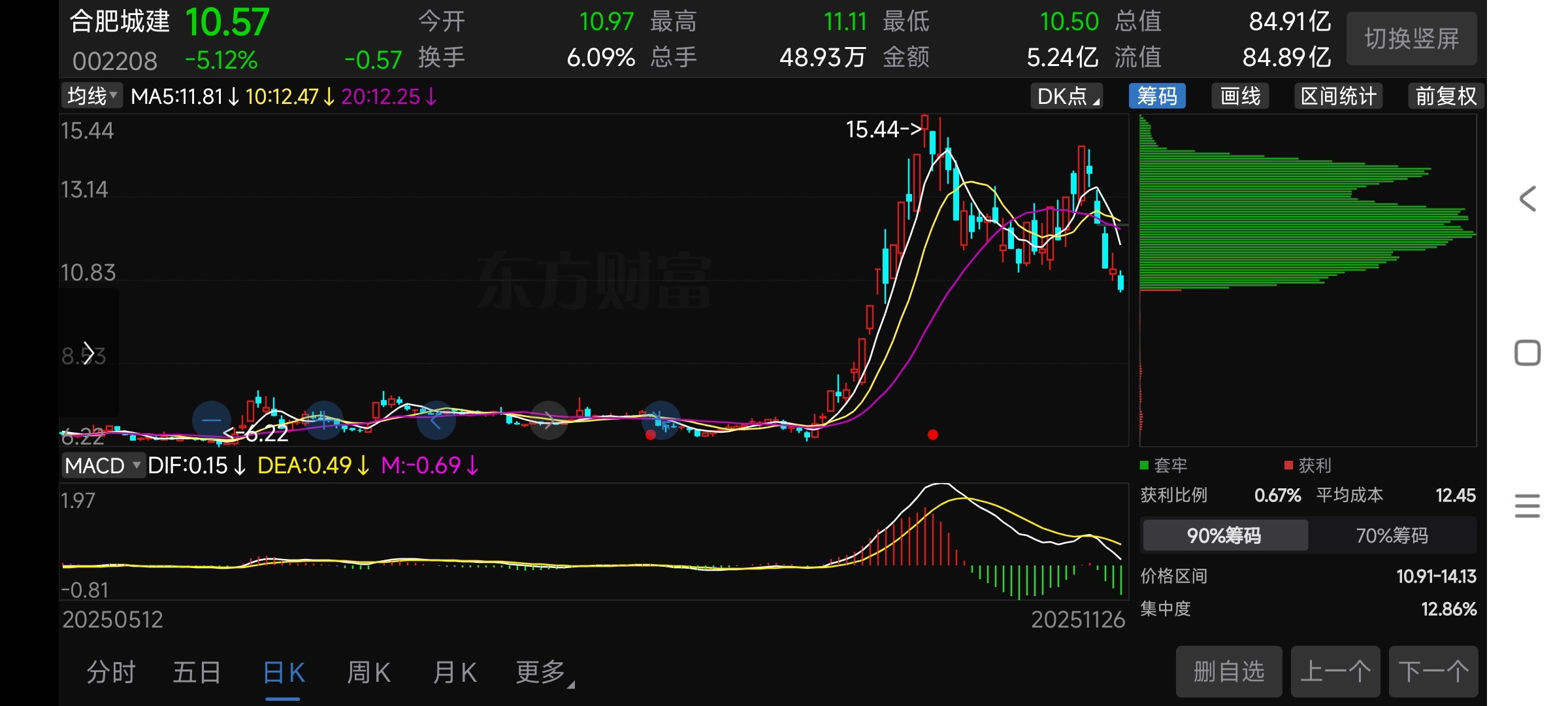 $合肥城建(SZ002208)$ K线情况和筹码分布,股友们怎么看