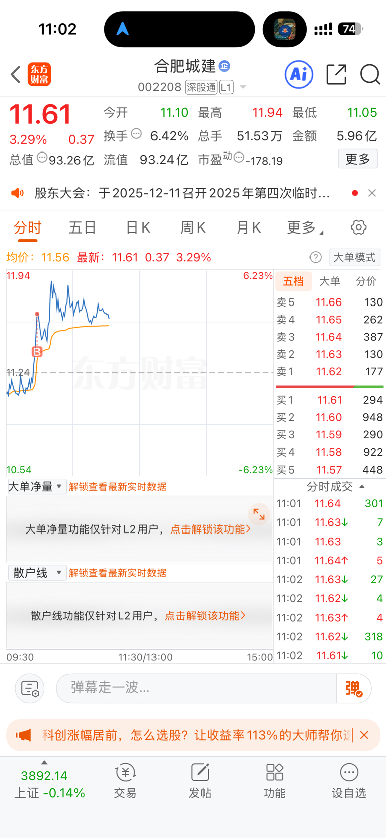 $合肥城建(SZ002208)$ 不用看了各位,今天不会超过我的买点,我没有一次赚钱的,能卖的卖了吧