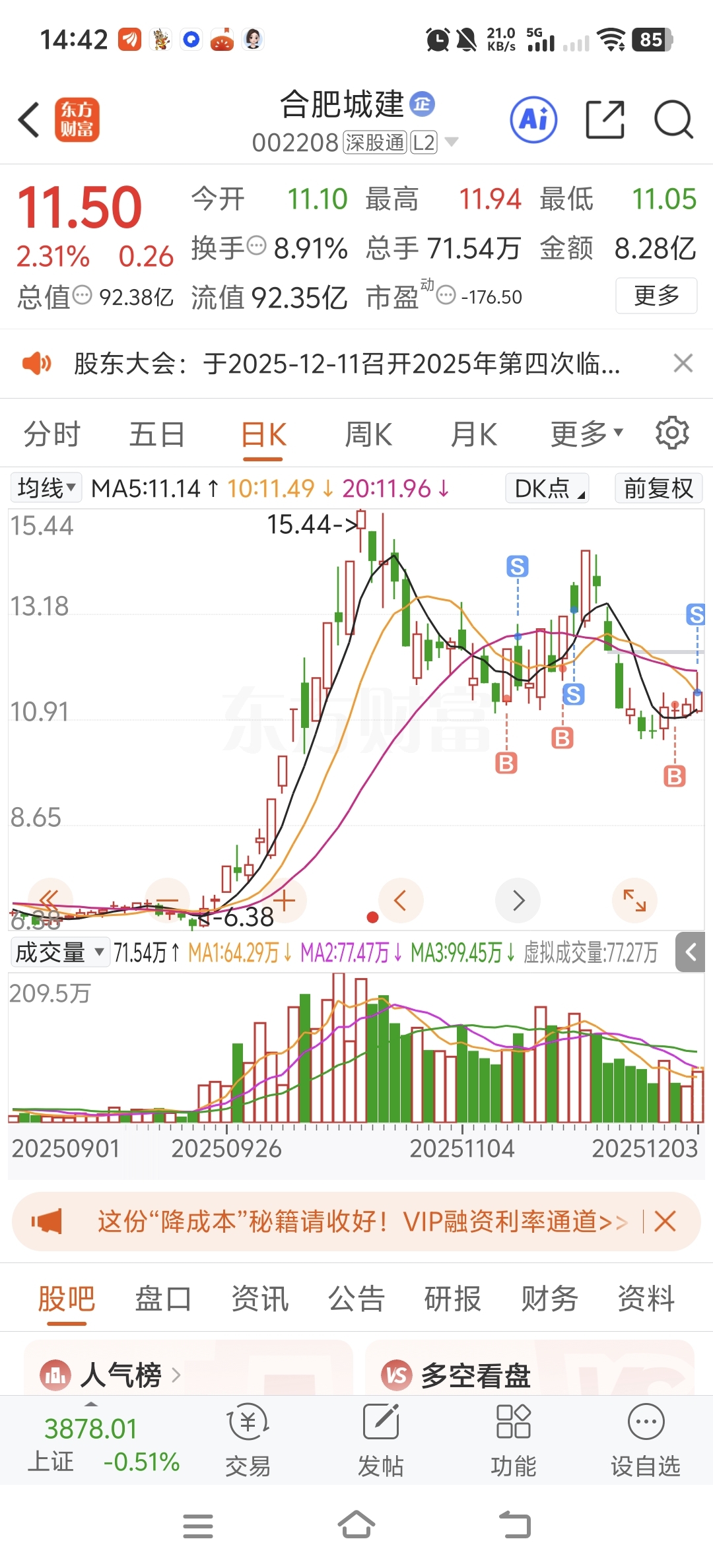 $合肥城建(SZ002208)$ 走了主力,格局了一天,知道你下午喜欢拉涨停。在见了,肥总