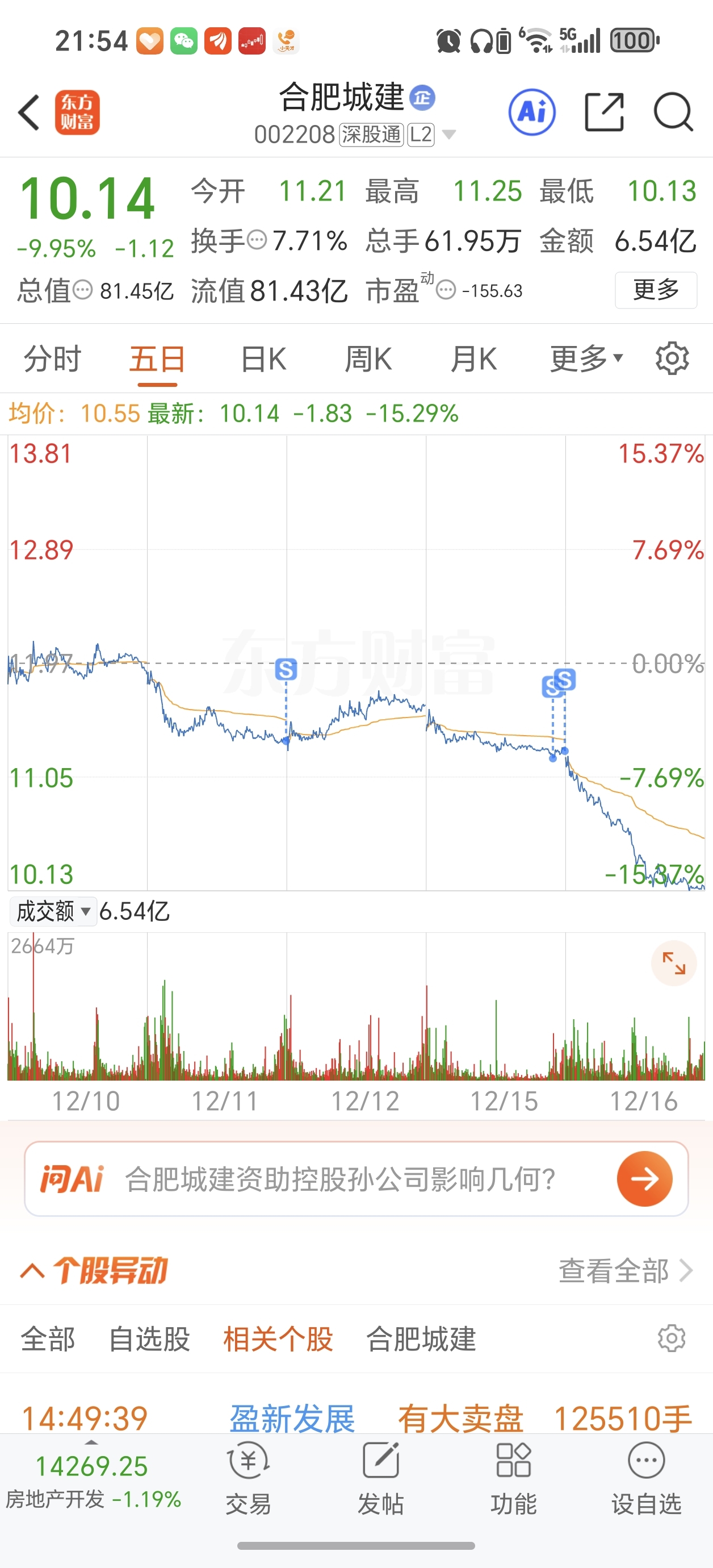 $合肥城建(SZ002208)$ 昨天尾盘全部割肉了,没想到躲过一劫啊