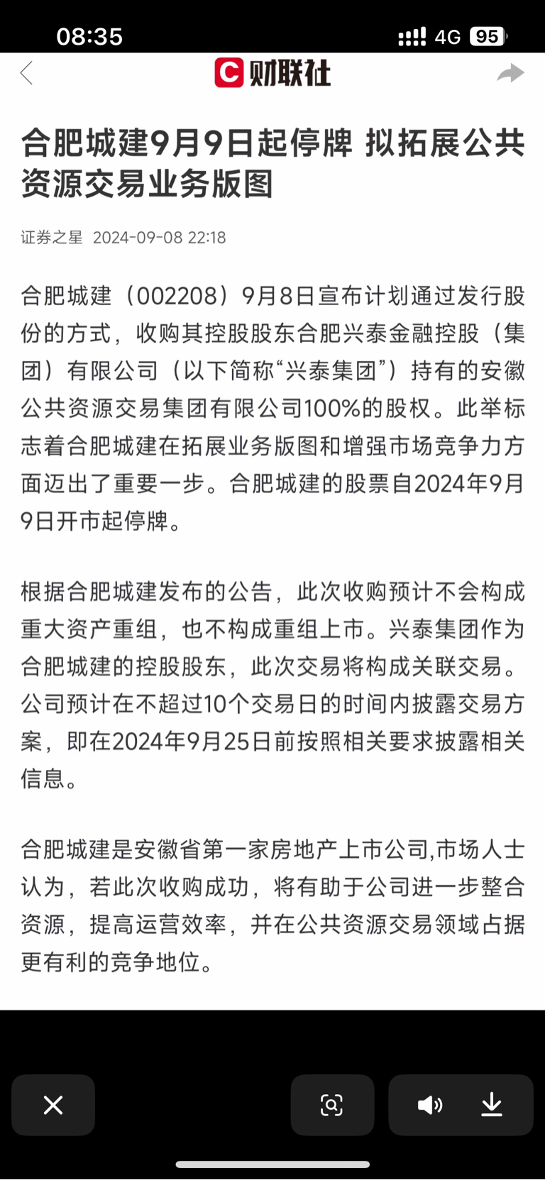 $合肥城建(SZ002208)$ 如果之前收购成功 最少十个板吧