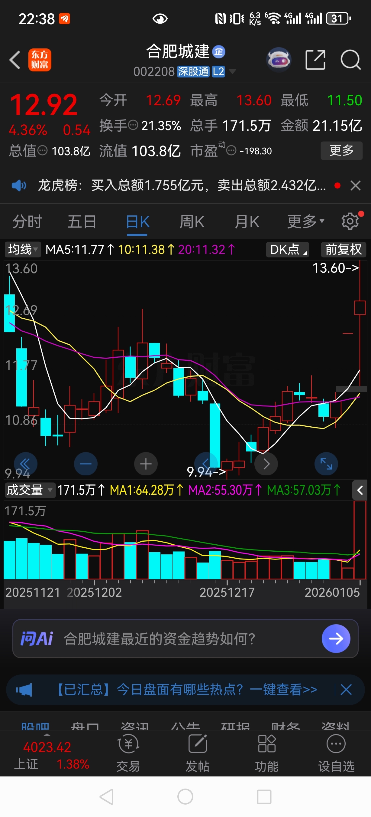 $合肥城建(SZ002208)$ 我都不知道现在的龙虎榜有什么意义,前期成交量那么低,谁有这么多的筹码,城建多半要憋个大的,现在又不是多高的位置,出货至于这么暗度陈仓?