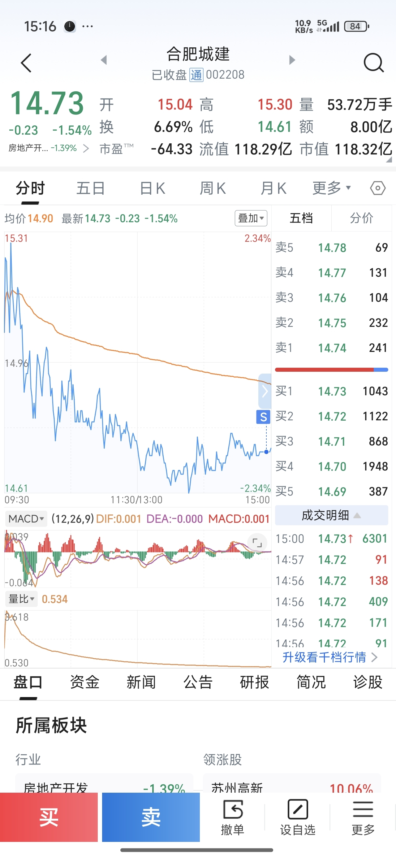 $合肥城建(SZ002208)$ 情绪杀开始了,含泪离场,明天千万不要涨停啊