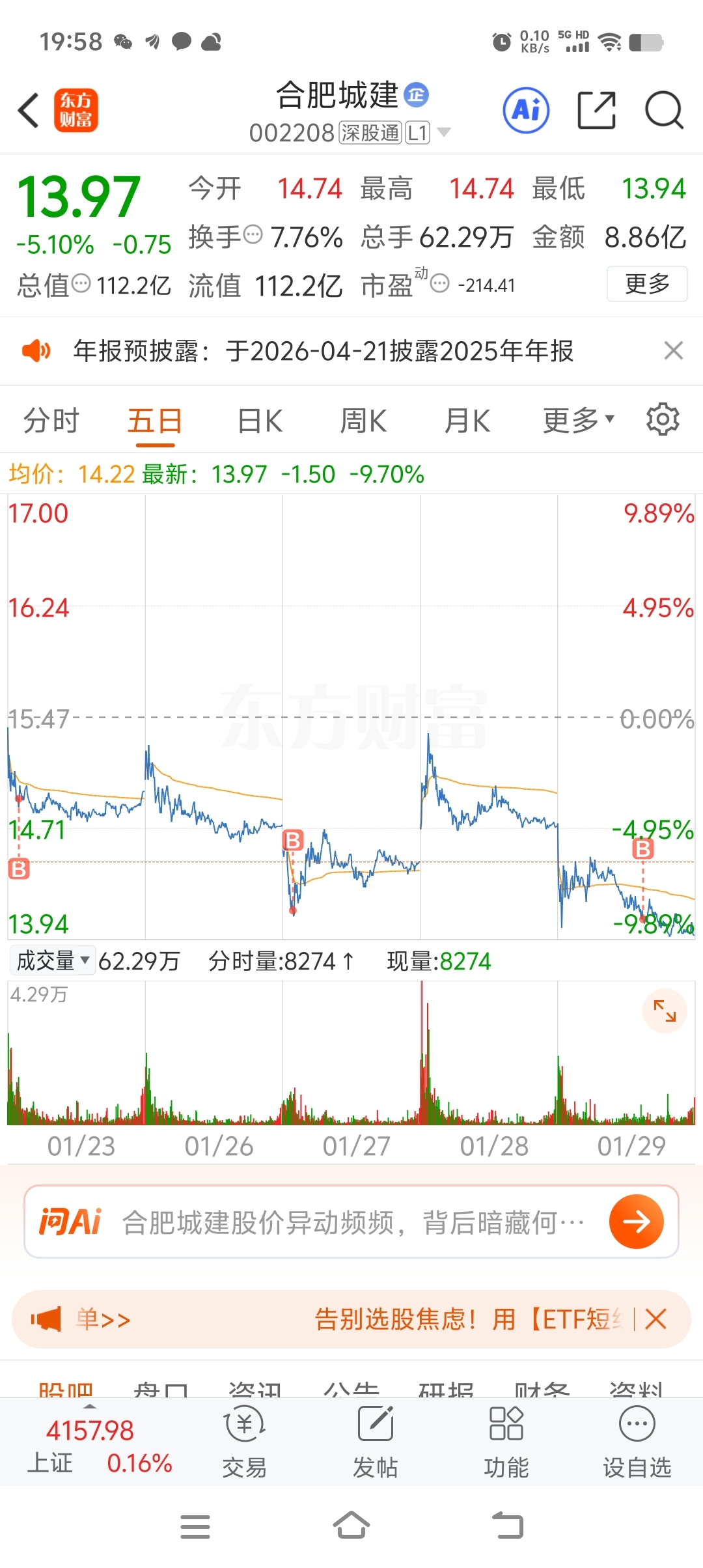 $合肥城建(SZ002208)$ 俺这算不算抄底。