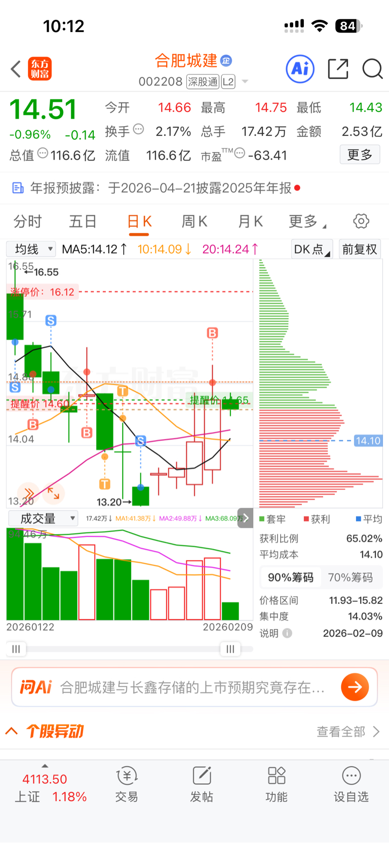 $合肥城建(SZ002208)$ 一卖你就涨,一买你就跌,市场4500家红,你还绿,我服了
