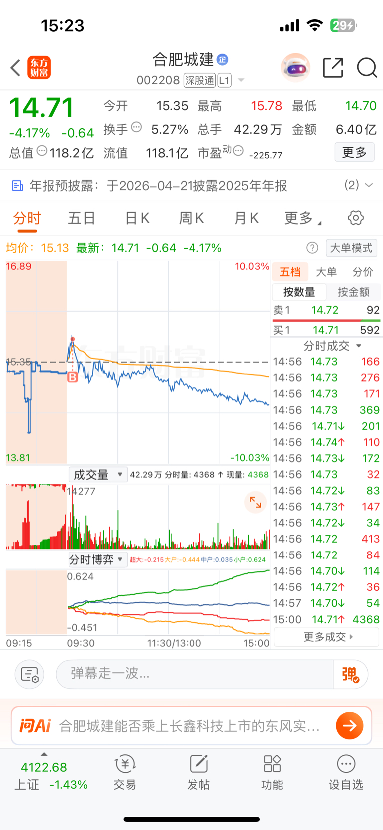 $合肥城建(SZ002208)$ 亏了6.5个点,重伤,买进去就后悔了,一念之间