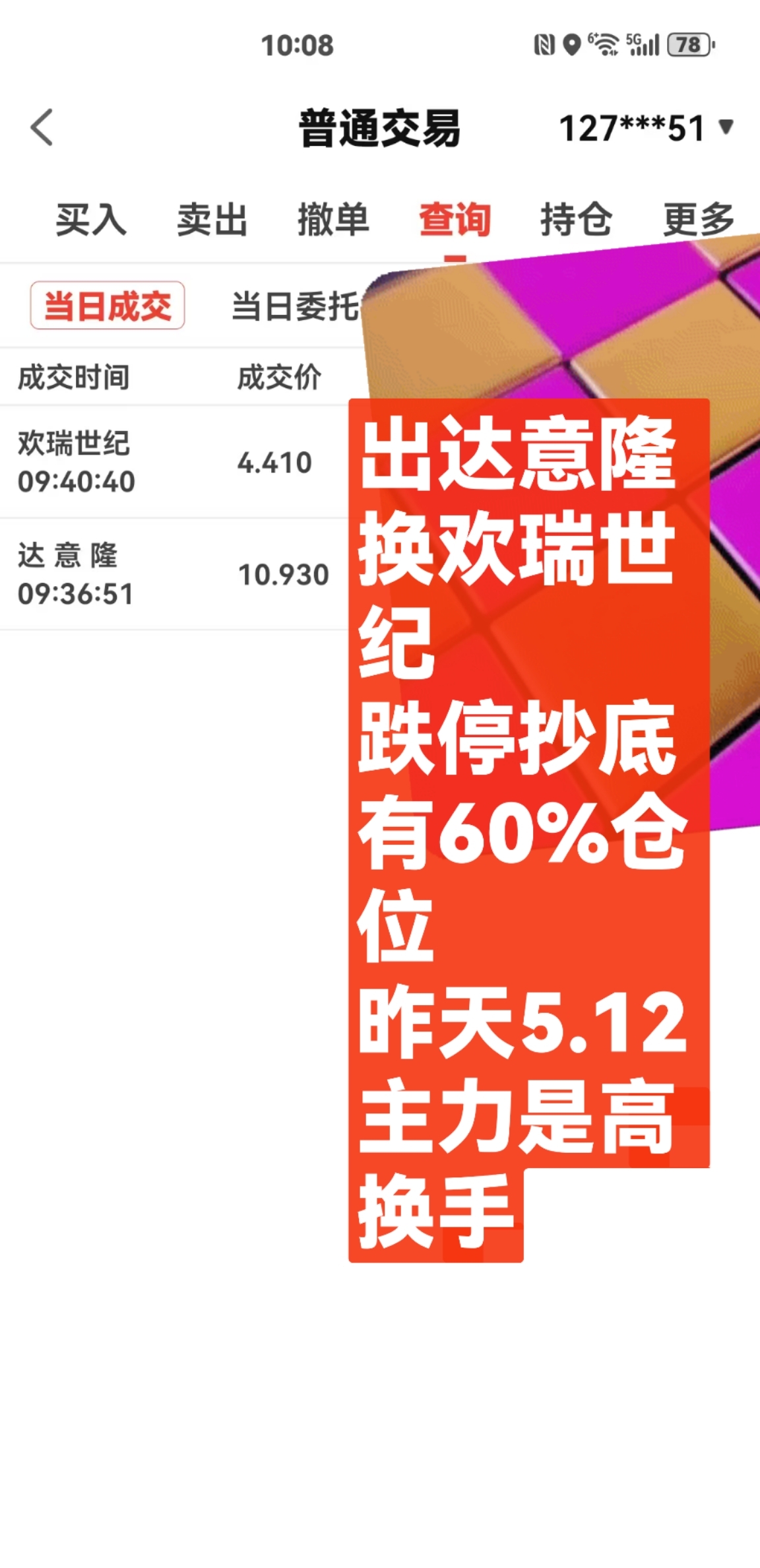 $达 意 隆(SZ002209)$ 达意隆我出了,换了欢瑞世纪报仇