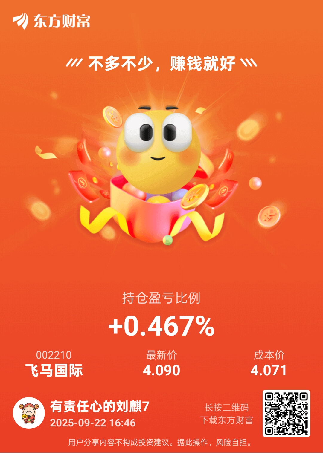 $飞马国际(SZ002210)$ #收盘点评# 首先声明我是个散户,我想说的是,各位可以多买点生活不易,我已明牌,拿住拿好了别轻卖。