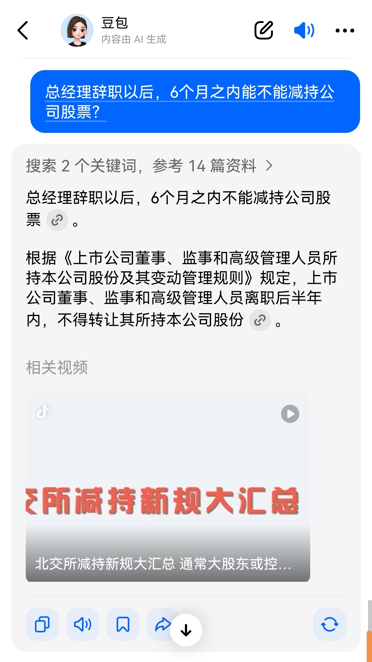 总经理辞职以后,6个月之内不能减持公司股票 。根据《上市公司董事、监事和高级管理人员所持本公司股份及其变动管理规则》规定,上市公司董事、监事和高级管理人员离职后半年内,不得转让其所持本公司股份 。