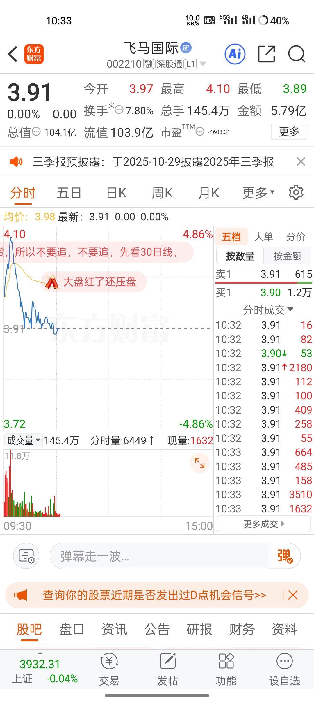$飞马国际(SZ002210)$ 怎么这么多小单进啊小单拉大单砸
