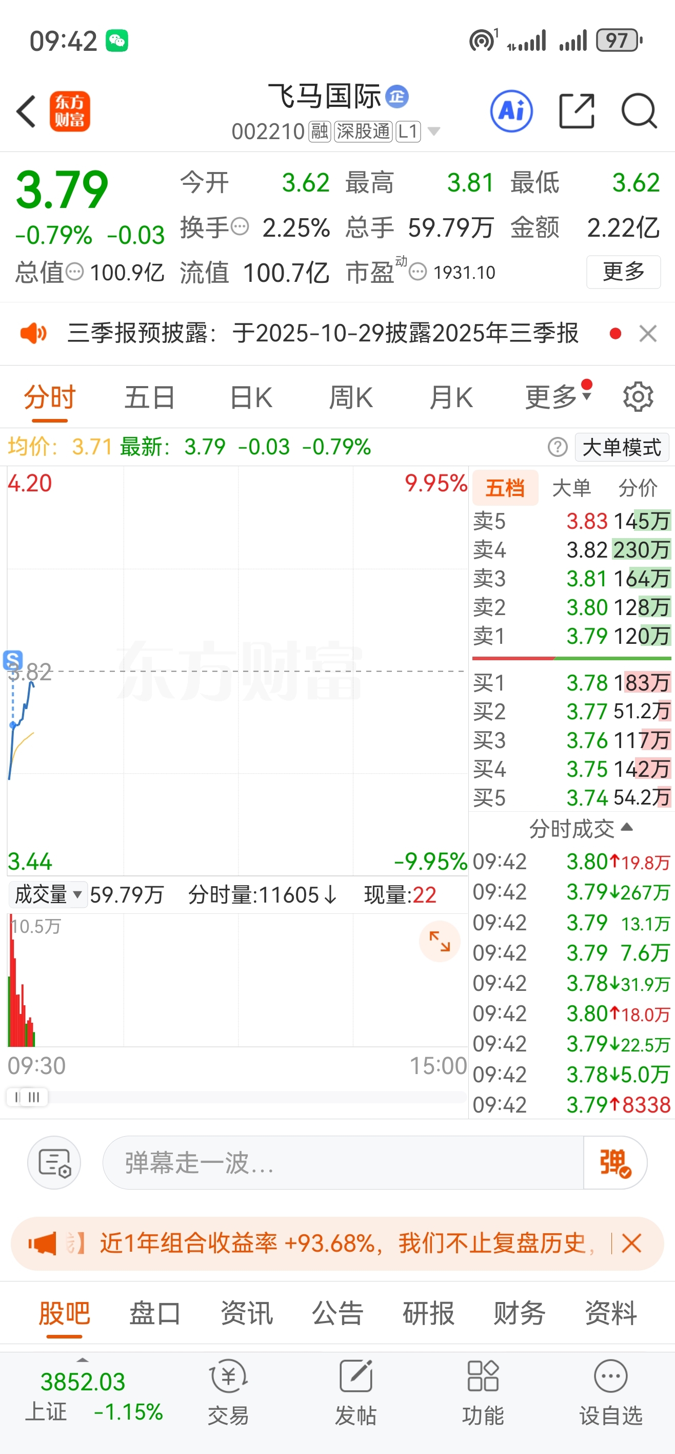 $飞马国际(SZ002210)$ 卖早了 亏13+个点