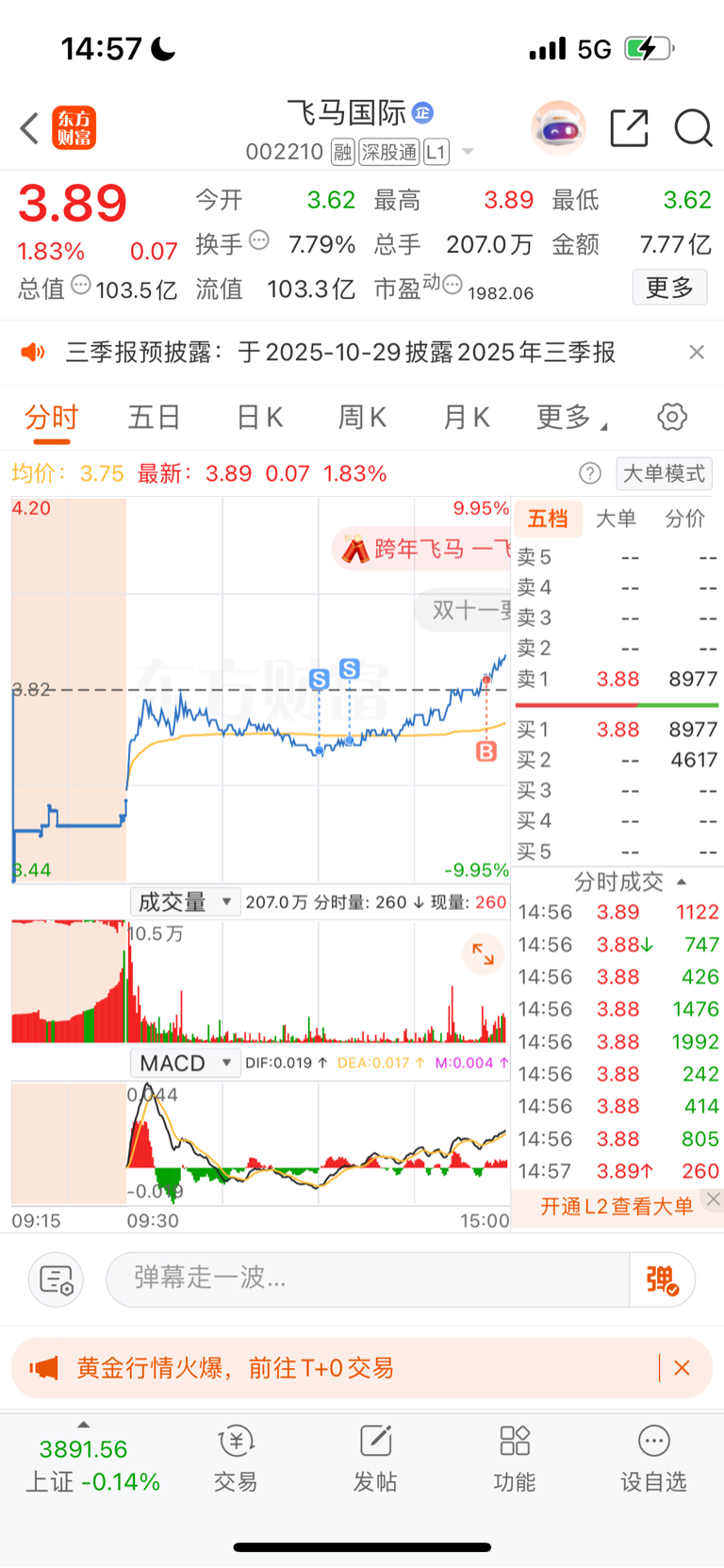 $飞马国际(SZ002210)$ 整天你们唱的,本来赚钱的一天又弄亏了