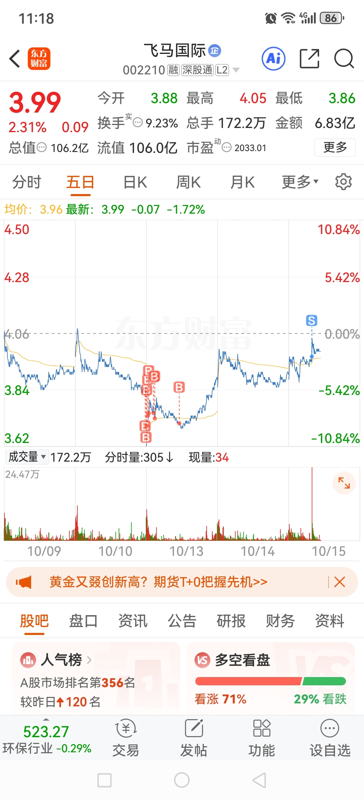 $飞马国际(SZ002210)$ 这么多资金进入,居然不涨停,不科学