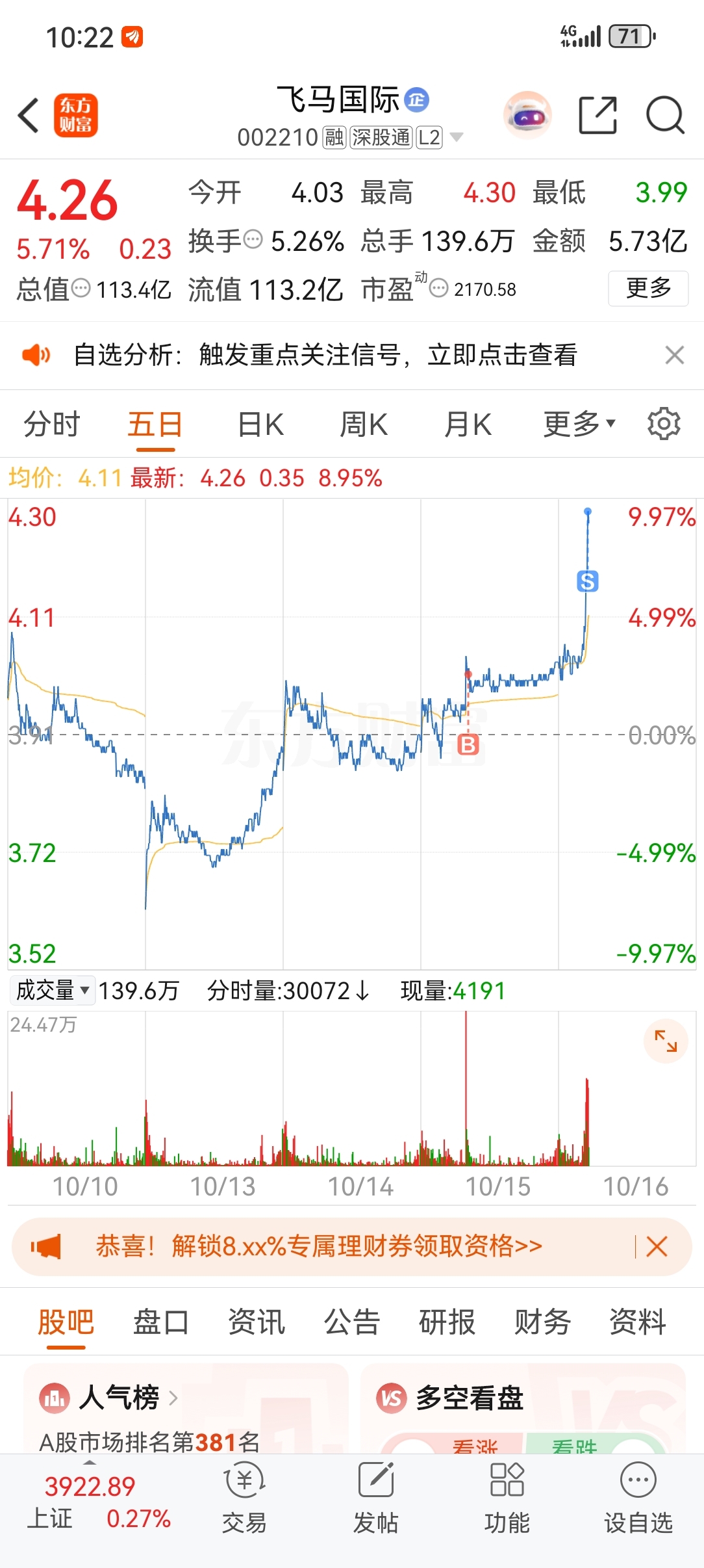 $飞马国际(SZ002210)$ 走了,留下的兄弟们发财