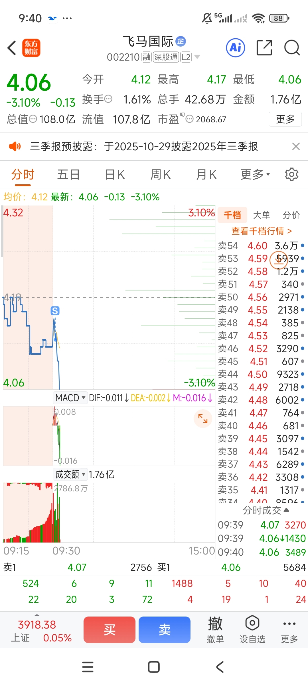 $飞马国际(SZ002210)$ 烦死了,天天亏,昨天尾盘才进,今天又亏