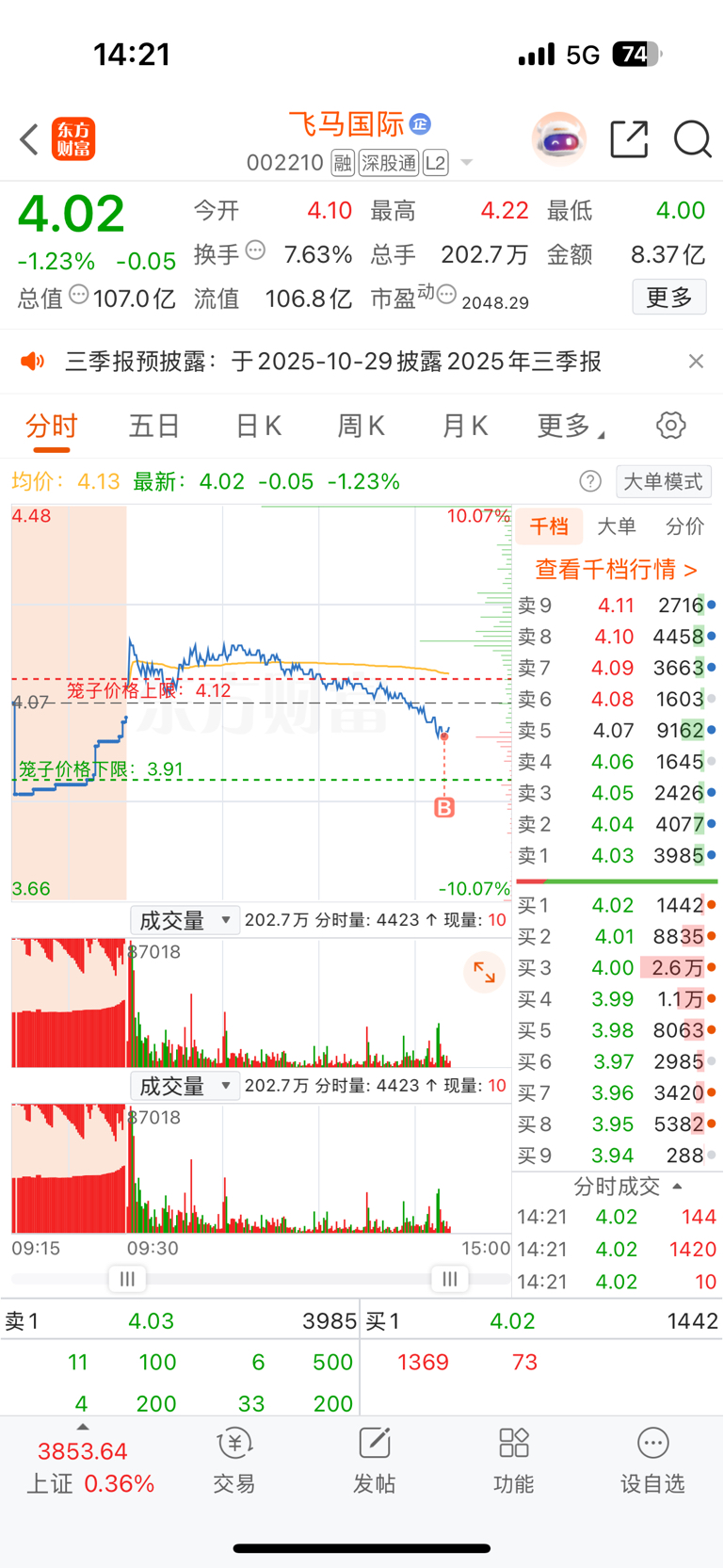 $飞马国际(SZ002210)$ 既然你给机会我就买点4元买入