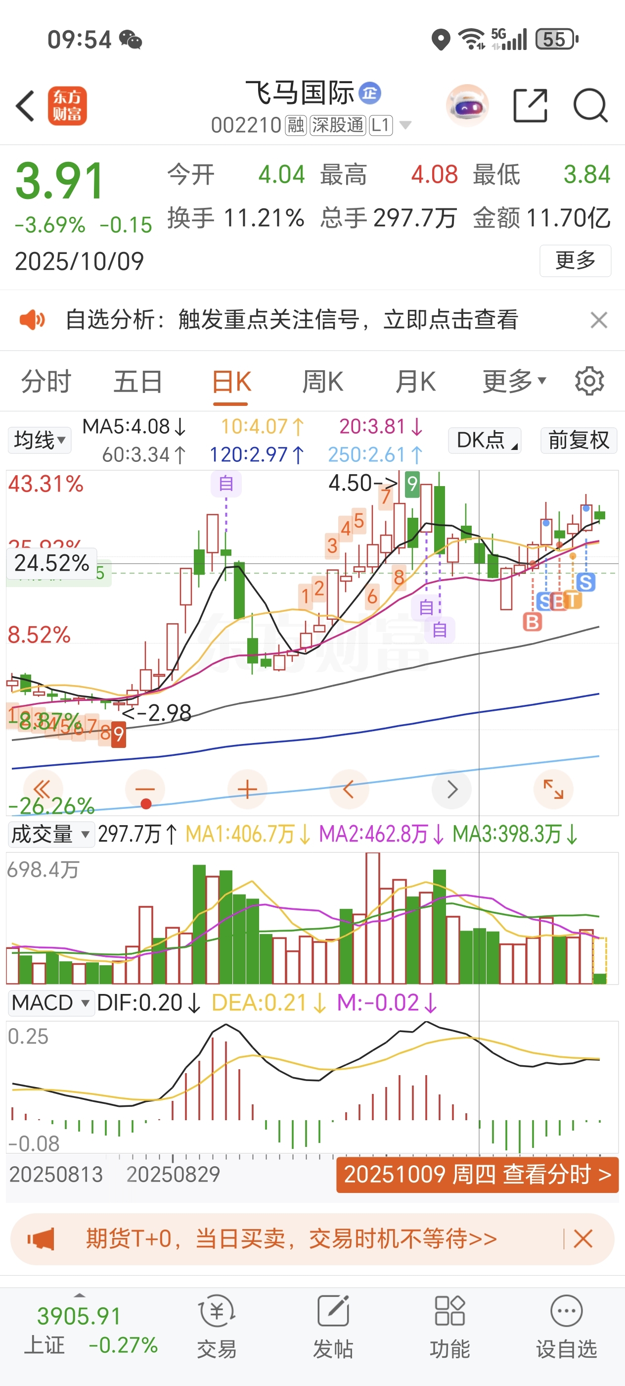 $飞马国际(SZ002210)$ 谢谢主力,打野结束,今天回海马了,毕竟我是好男人