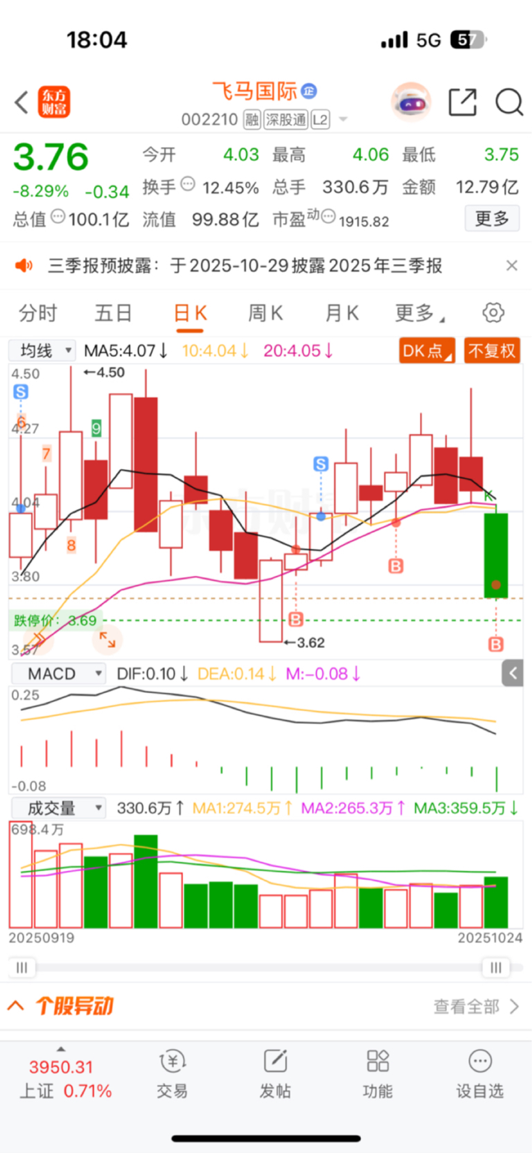 $飞马国际(SZ002210)$ 人弃我取,尾盘加了1成仓,下周如果能-5加一成-10就加3成仓主力你继续砸不要手软哈