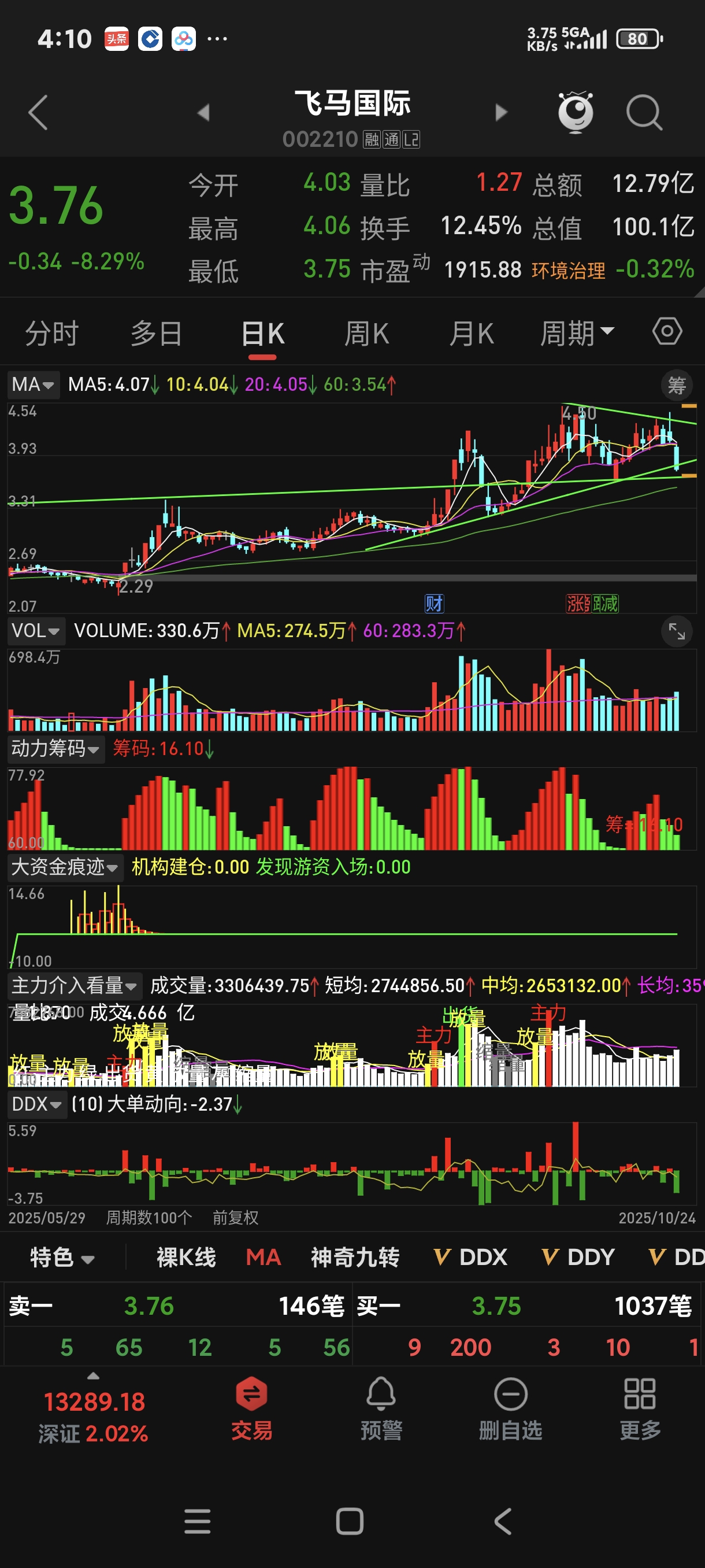 飞马周五收盘跌破趋势线,先出来看看,等他站回趋势线再回来。周五这么砸盘有点看不懂