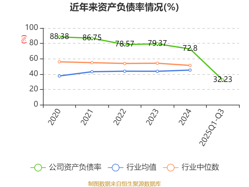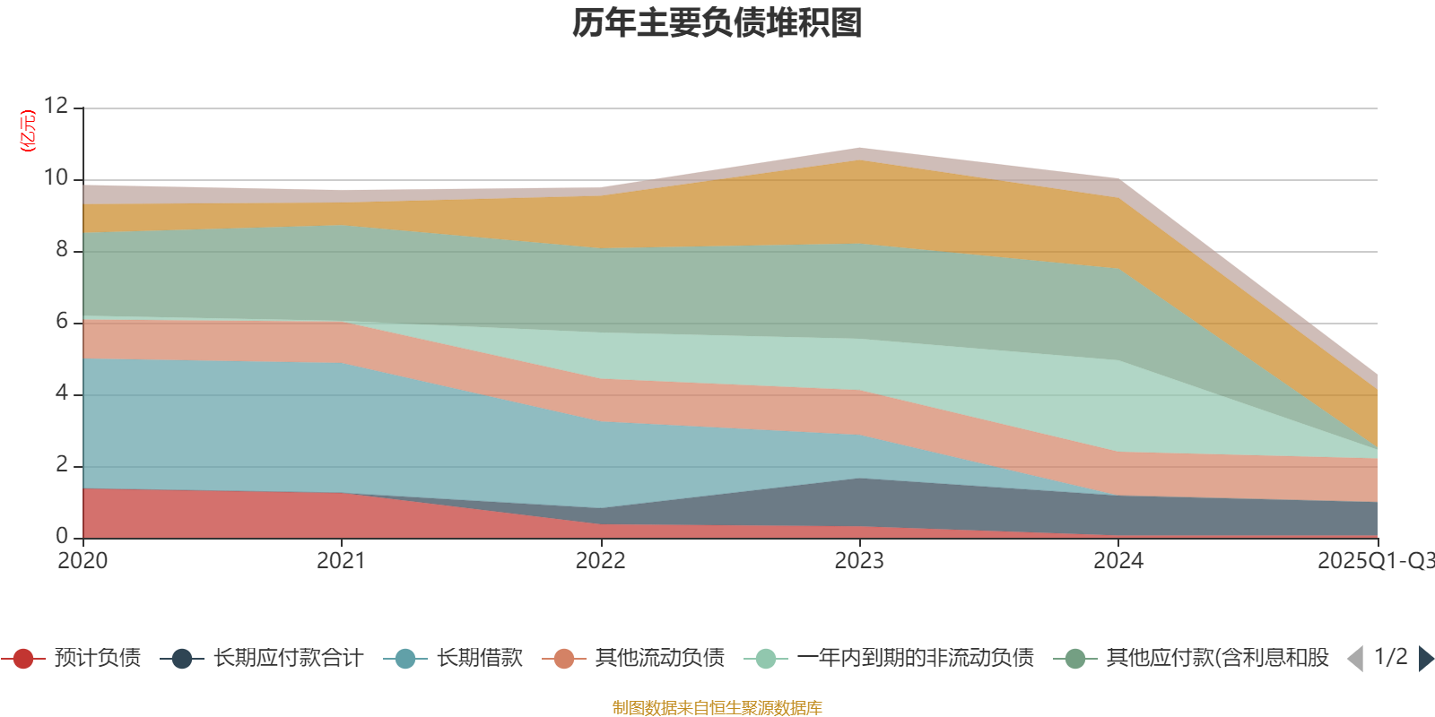 负债重大变化方面,截至2025年三季度末,公司其他应付款(含利息和股利)较上年末减少97.5%,占公司总资产比重下降18.13个百分点;一年内到期的非流动负债较上年末减少90.34%,占公司总资产比重下降16.79个百分点;应付票据及应付账款较上年末减少18.52%,占公司总资产比重下降2.95个百分点;长期应付款合计较上年末减少16.57%,占公司总资产比重下降1.52个百分点。