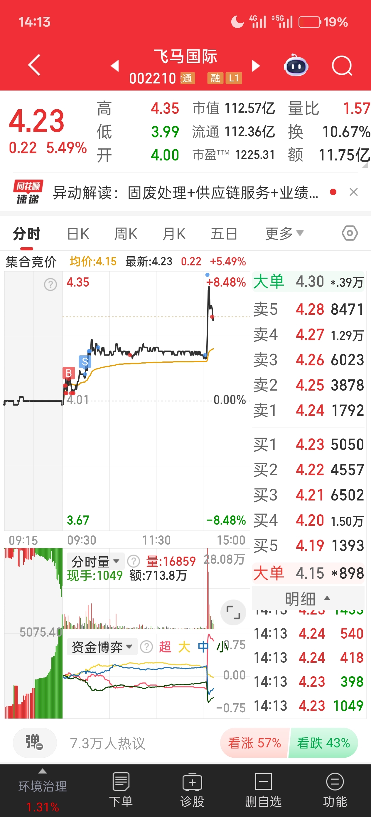 $飞马国际(SZ002210)$ 刚卖了一点就涨了,还好我外太空还有卖单,不然就亏了