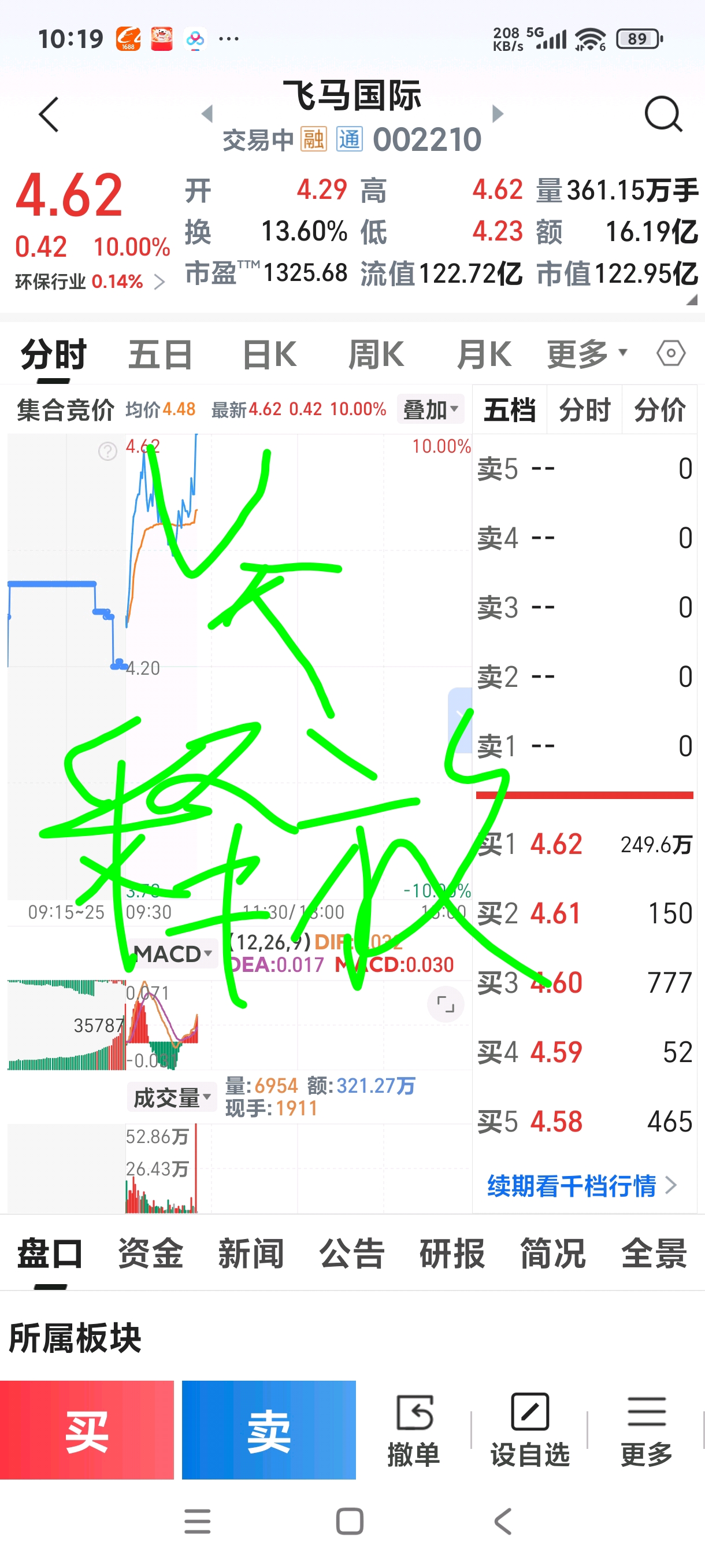 飞马主力今天操盘很精彩!早盘拉起来故意差两分钱不涨停,让散户以为它很弱,这里特意留出空间给5.50前期平台这里的散户跑路,然后往下扎一头让散户感觉主力拉不动。然后起来在5.51这里开始五位数大单吃货,不一会就直线涨停。这套路,没谁了!给主力今天的表现点赞!!!今天这里分时挖的坑释放了短线跟风盘的抛压,为后期拉升减轻了压力,很棒!!!