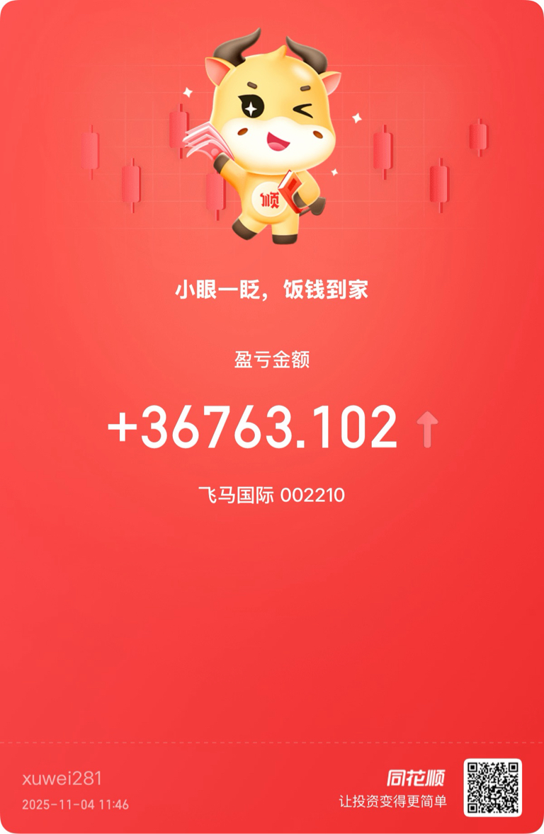 $飞马国际(SZ002210)$ 拿了79天,小别几天,过几天再回来,留下的继续发财。