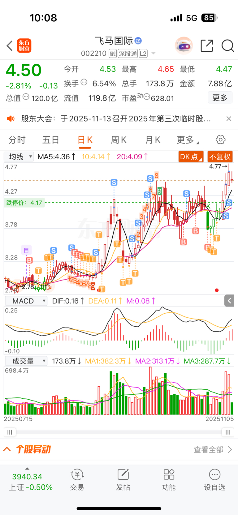$飞马国际(SZ002210)$ 第二次进来昨天4.72全清仓了,留下的发财。