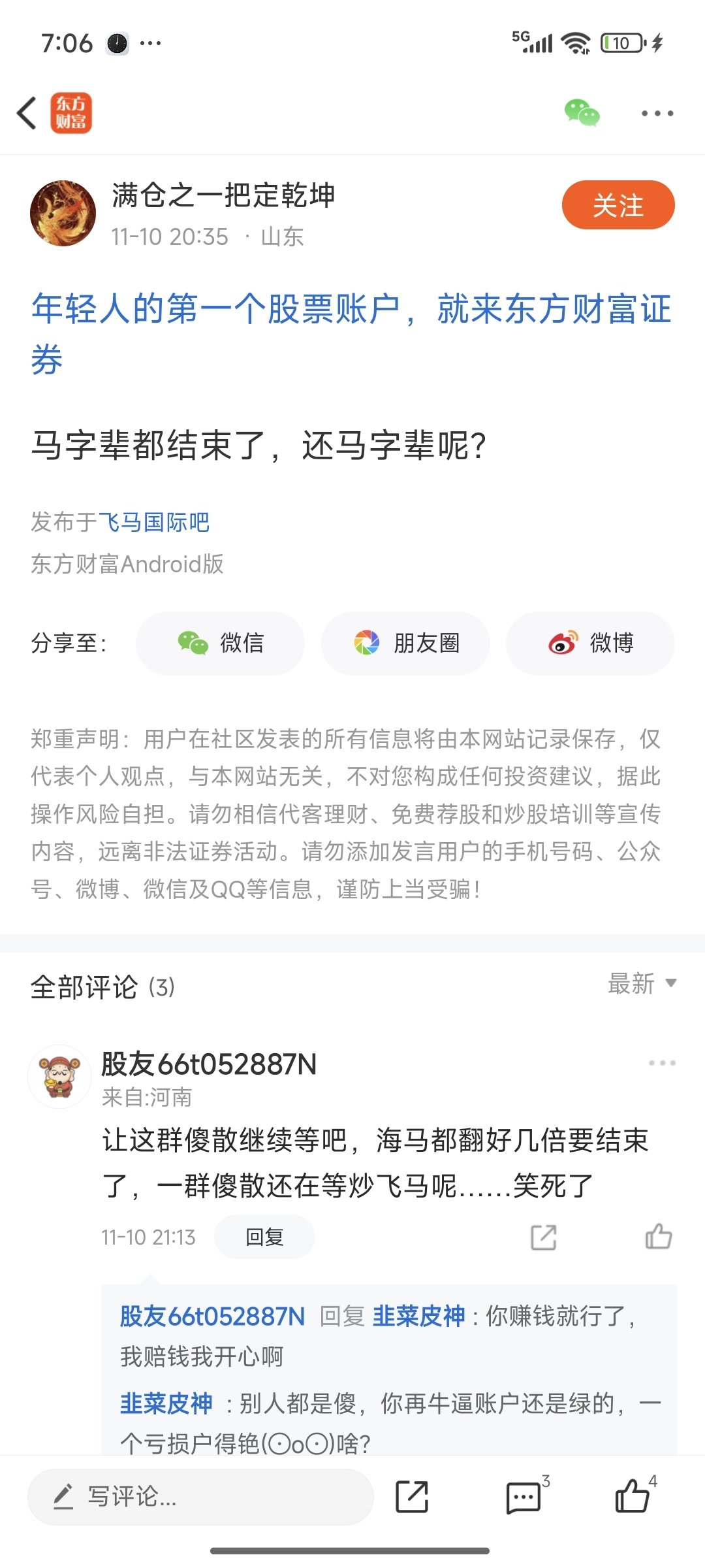 温馨提示: 1.根据《证券法》规定,禁止编造、传播虚假信息或者误导性信息,扰乱证券市场;2.用户在本社区发表的所有资料、言论等仅代表个人观点,与本网站立场无关,不对您构成任何投资建议。用户应基于自己的独立判断,自行决定证券投资并承担相应风险。《东方财富社区管理规定》