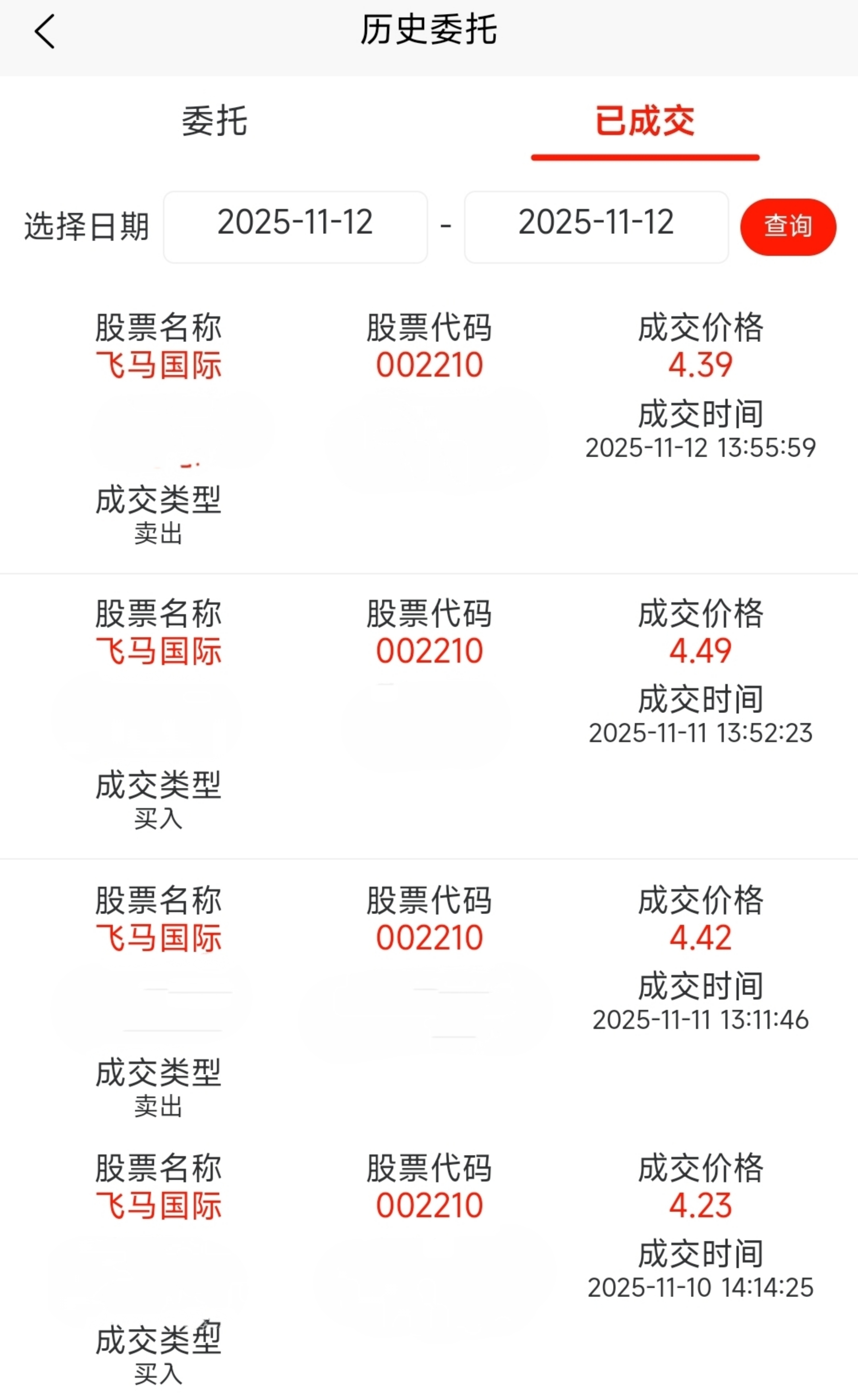 $飞马国际(SZ002210)$ 周一4.23买,昨天4.42卖,又4.49买回。刚刚4.39割。又玩了个寂寞