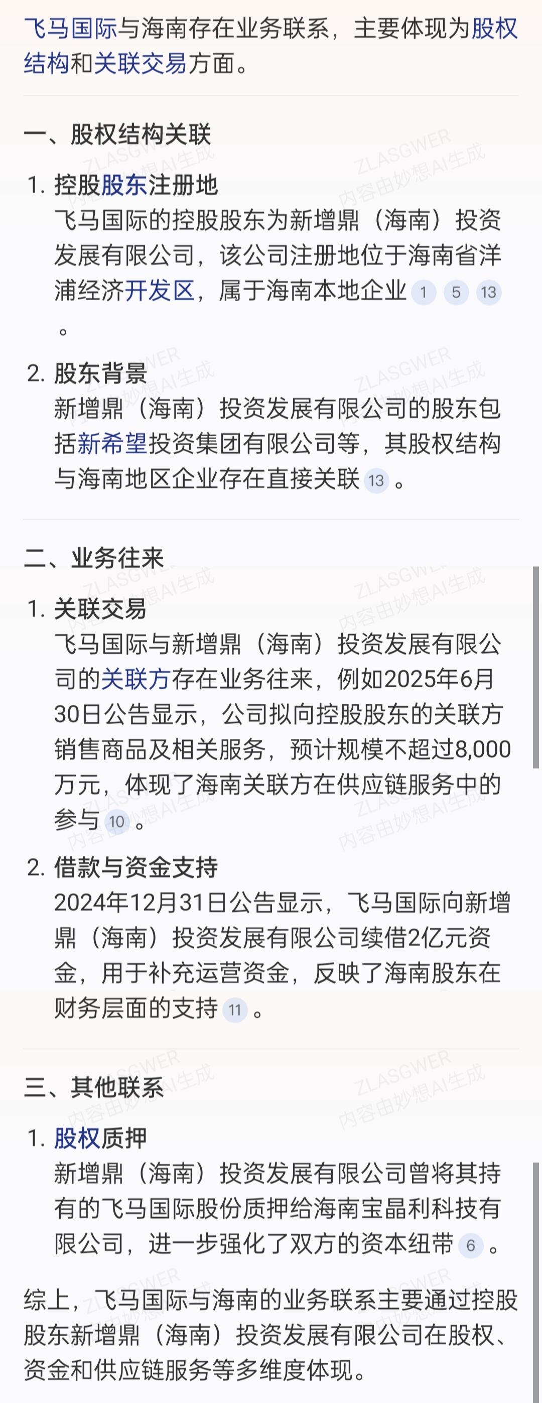 $飞马国际(SZ002210)$ 飞马国际跟海南确实有直接关系