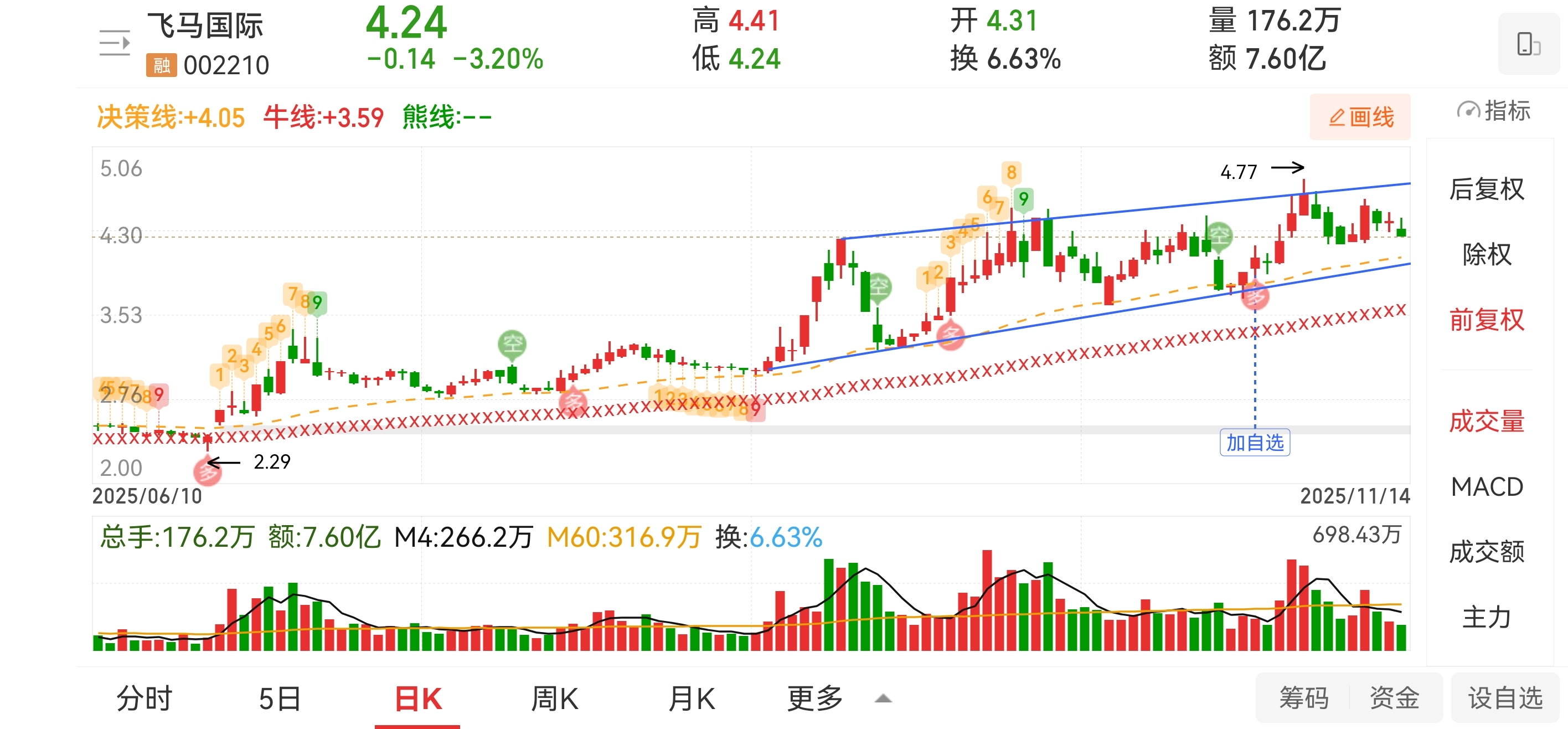 $飞马国际(SZ002210)$ 区间震荡,毫无突破。微弱趋势向上,月底看能不能突破选择方向,月底还是不能就废马。外面,美好寓意的股票疯涨,谁还会守着废马祈祷?????