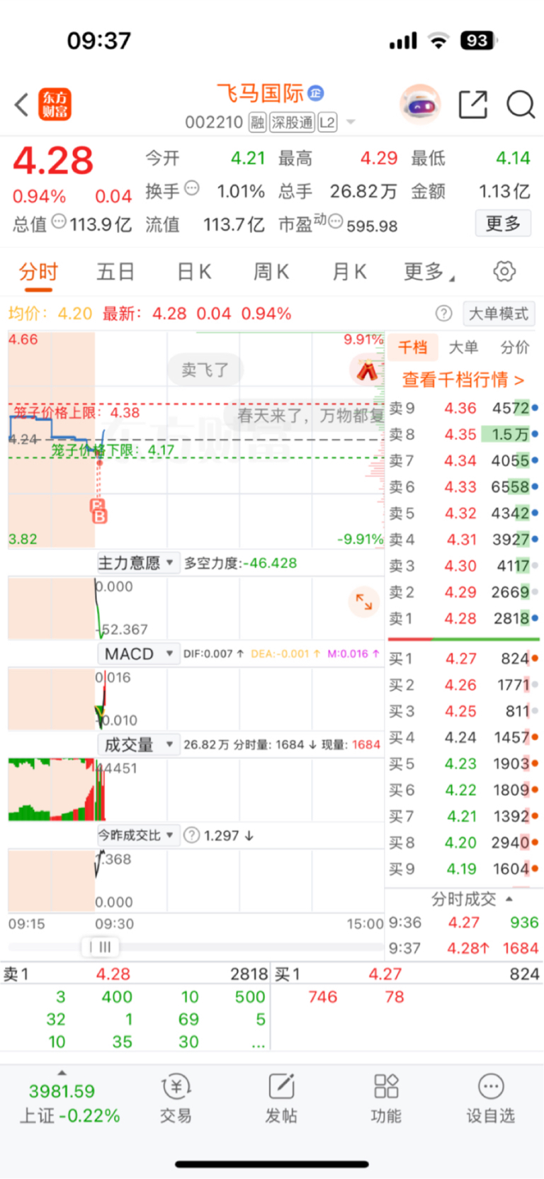 开盘2笔第二笔最低4.15买的,拉高就卖出了哈