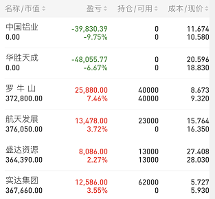 中国铝业,今天走了,昨天有位朋友说会冲高回落,我还不情愿,因为这家公司刚中了一个大项目,认为还是有中线行情的,一直不愿意走,但真如这位朋友说的了,今天也不留了,出来换仓。
