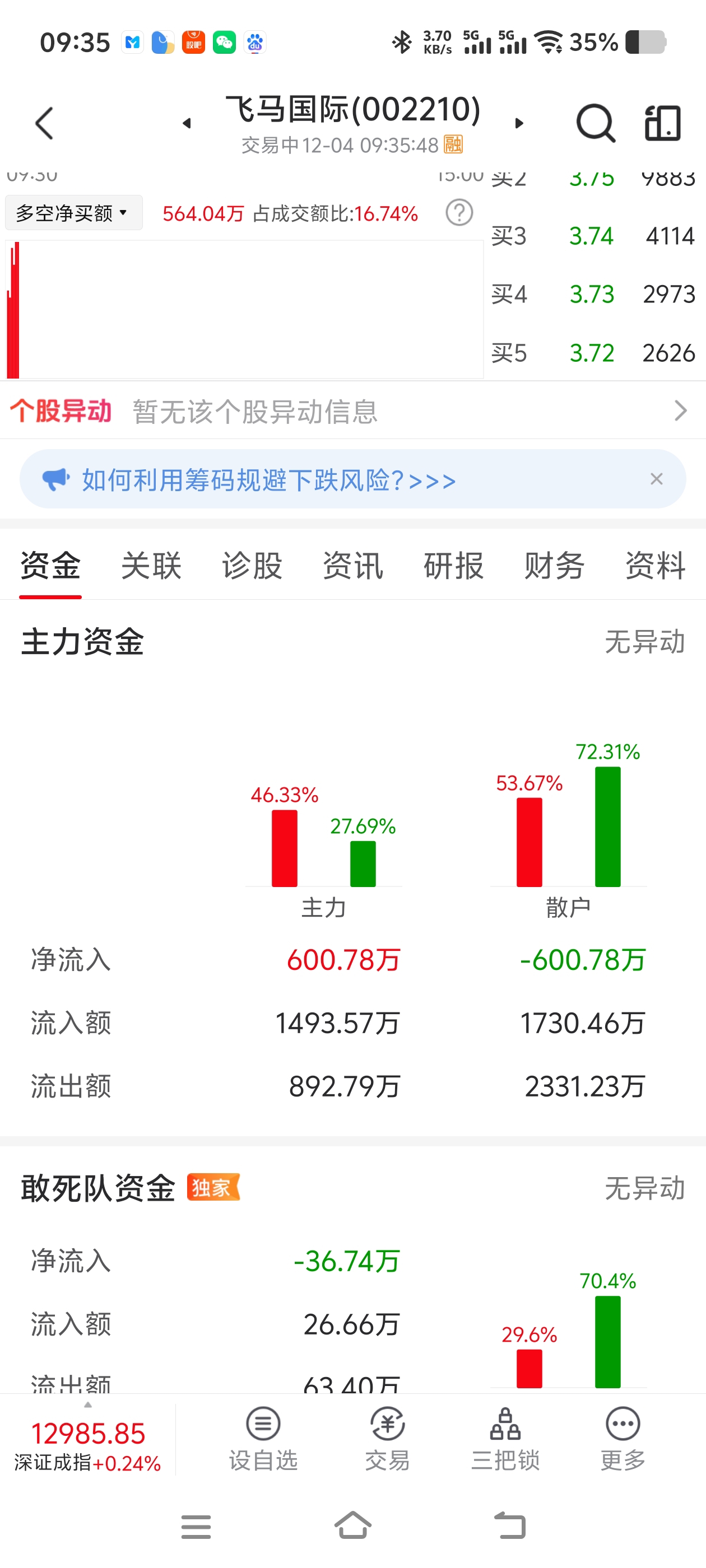 $飞马国际(SZ002210)$ 朱离开始扫货了