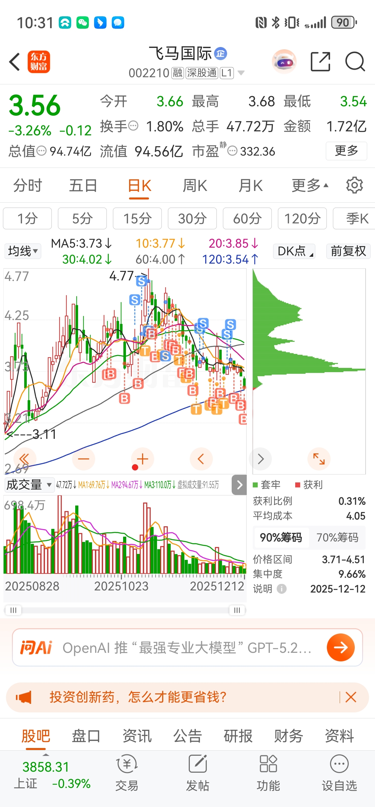 $飞马国际(SZ002210)$ 没猜错的话。 下午最低价收盘。
