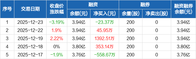 飞马国际:融资净偿还23.37万元,融资余额3.94亿元(12-23)