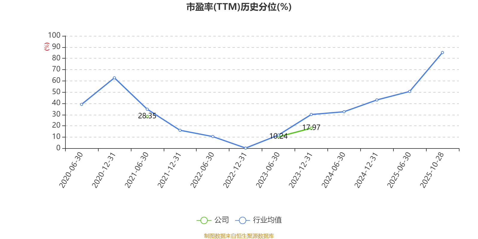 市盈率、市净率为负时,不显示当期分位数,会导致折线图中断。
