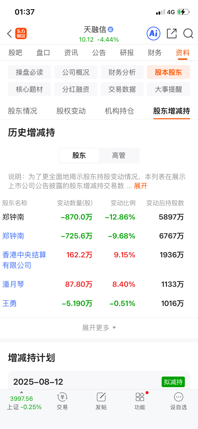 $天融信(SZ002212)$ 买股票是不是先公司股东有没有减持