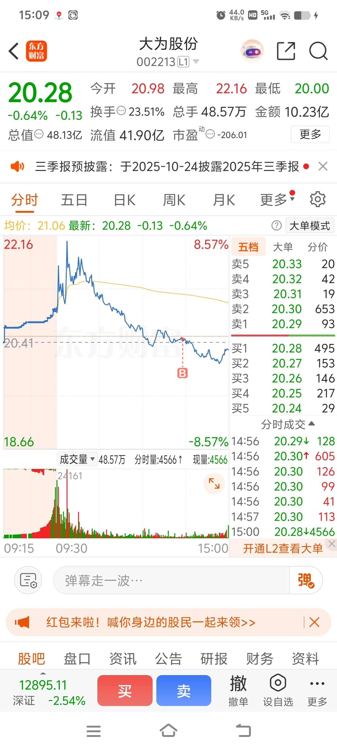 $大为股份(SZ002213)$ 入套,玛的