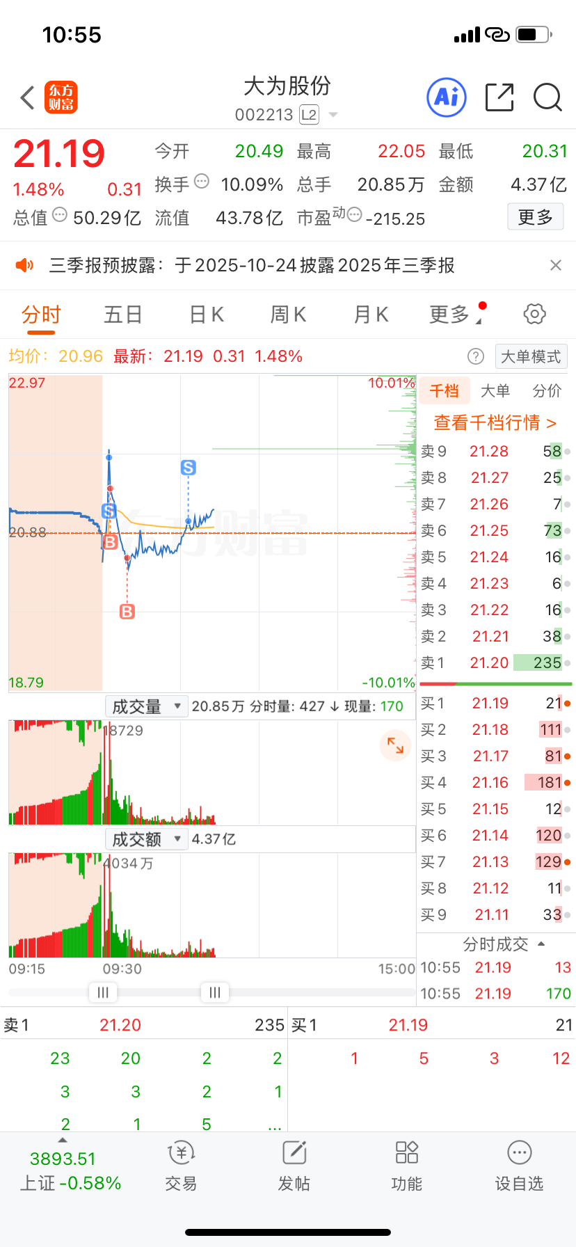 $大为股份(SZ002213)$ 每天高抛低吸搞大为 爽