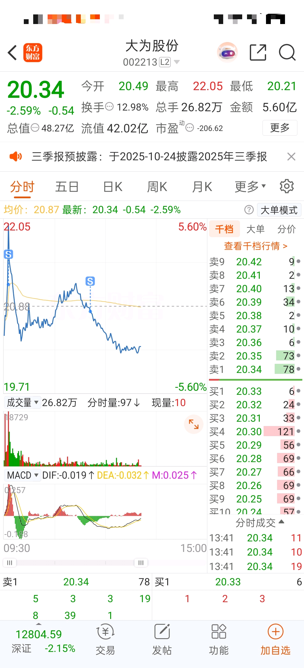 $大为股份(SZ002213)$ 无救了,本来想留着,最后快打到成本线了,毫不犹豫的走掉,最后只赚了一个点,删自选了