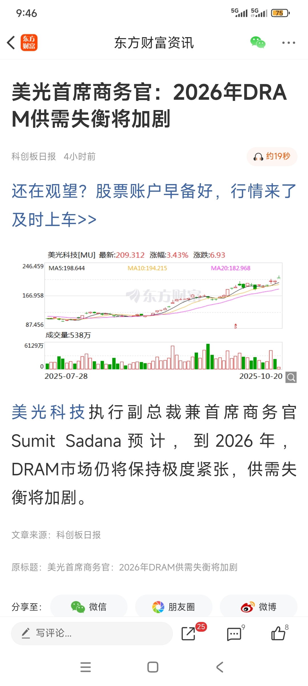$大为股份(SZ002213)$ 美光科技今晚又创历史新高了,明年内存条供应紧张,大为明天又是高开,低不低走不知道了