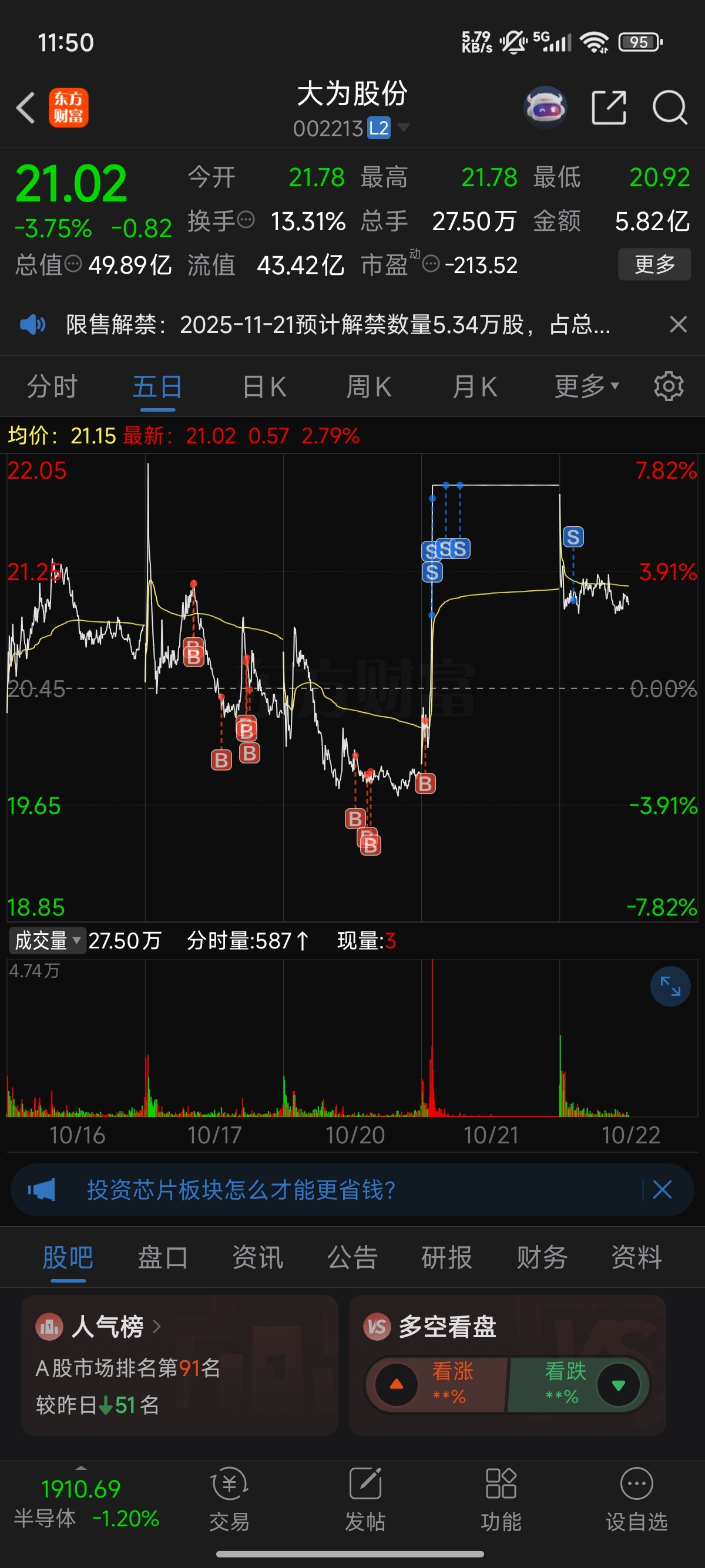 $大为股份(SZ002213)$ 就知道你是这个尿性,昨天基本跑完了