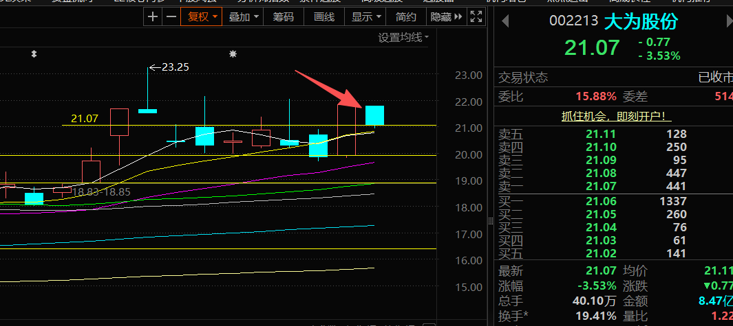 来,发个图给你看,它今天做了个回踩,没有踩到昨天涨停的二一位置。