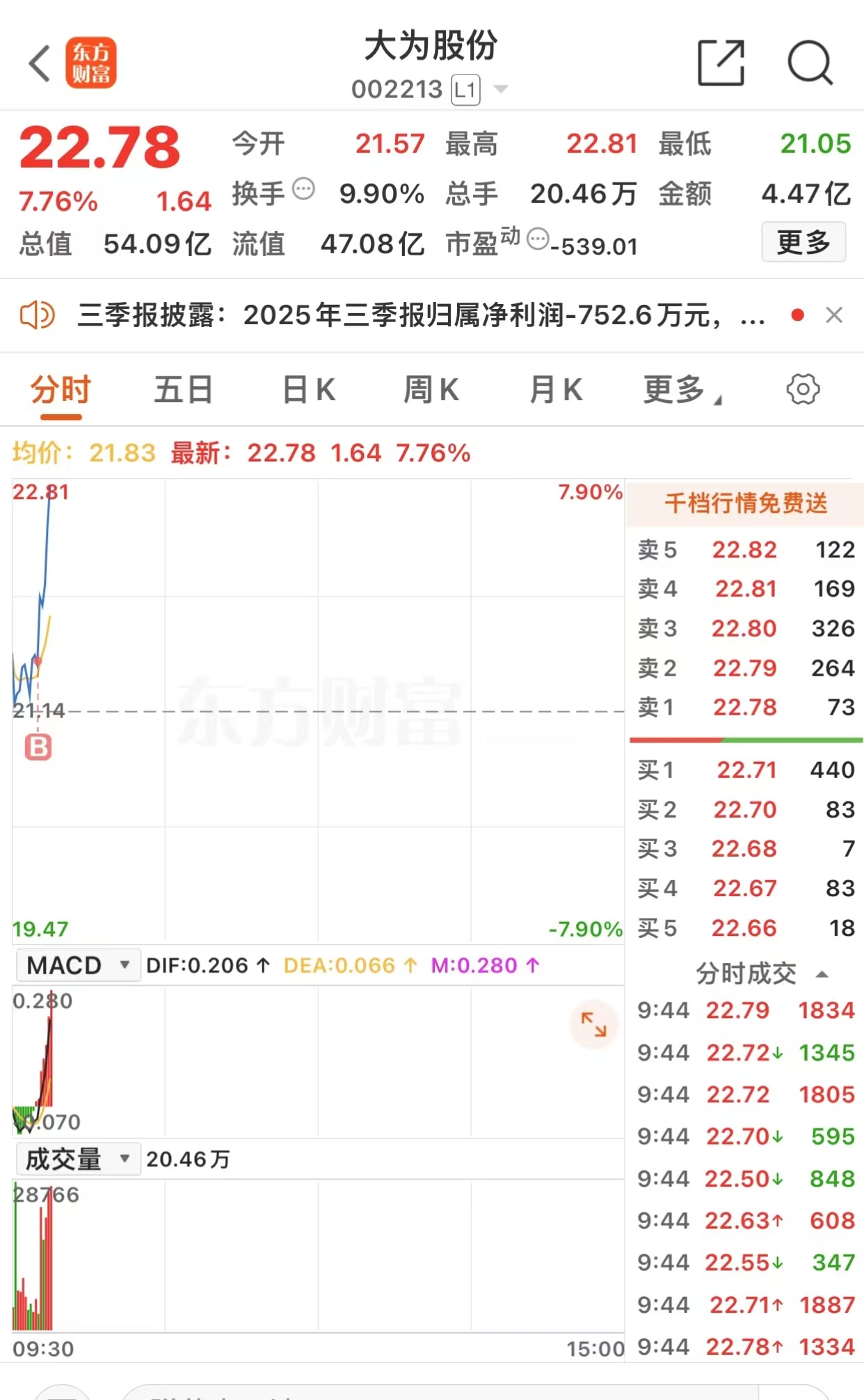 $大为股份(SZ002213)$ 上#炒股日记# #强势机会# #投资干货#