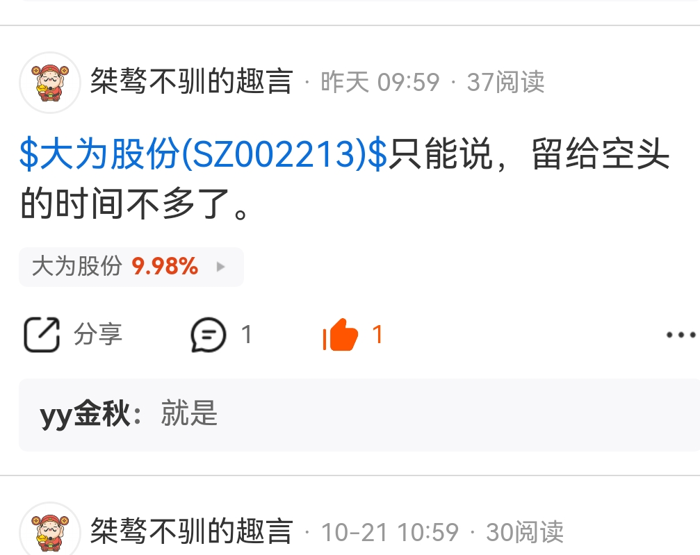 $大为股份(SZ002213)$ 还有谁记得我发过的帖?