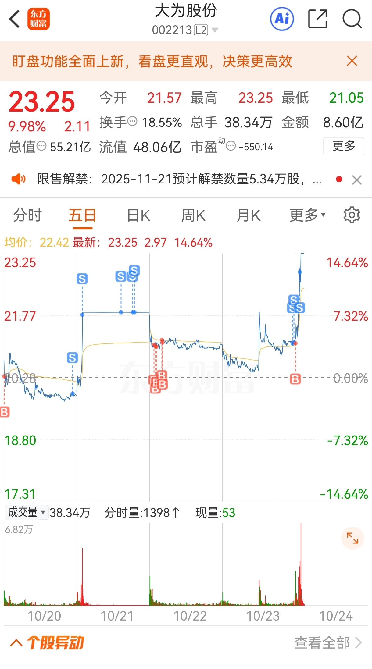 $大为股份(SZ002213)$ 大家发财,大为走了个W,现在涨停突破还可能要走主升浪了,我现在出了有可能是个错误,有机会我还会回来。大家发财