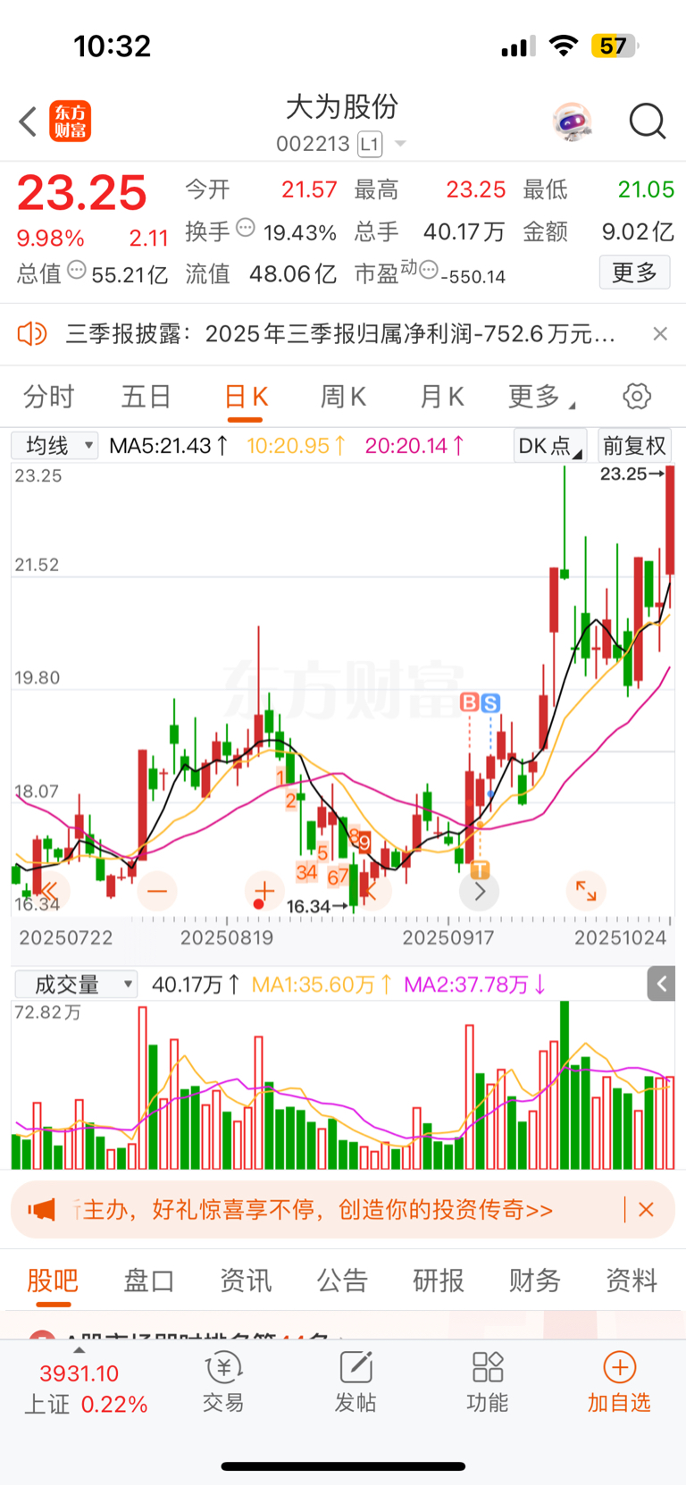 $大为股份(SZ002213)$ 从此以后大仓位只用来玩长线,再全仓玩短线我就是傻瓜