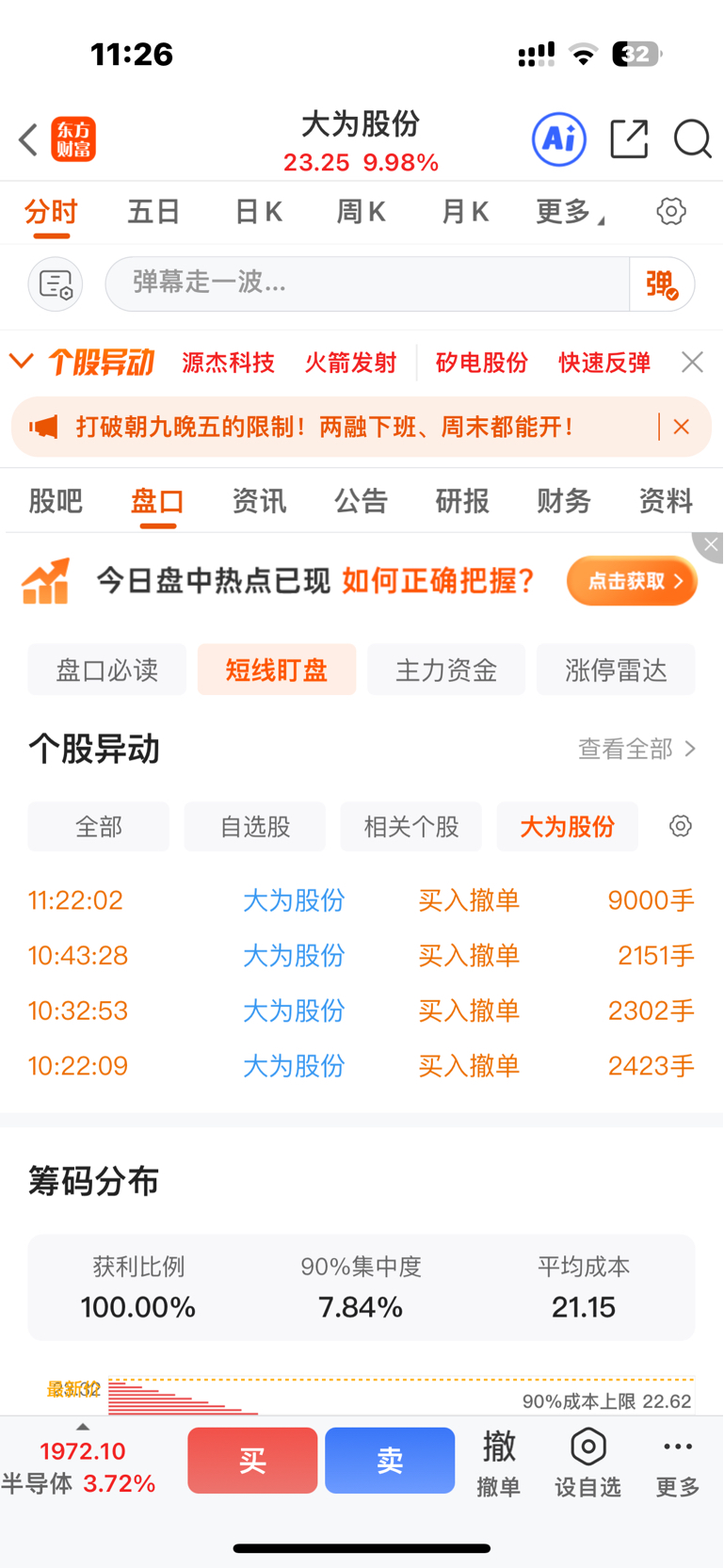 $大为股份(SZ002213)$ 大单都撤了,小单前面顶